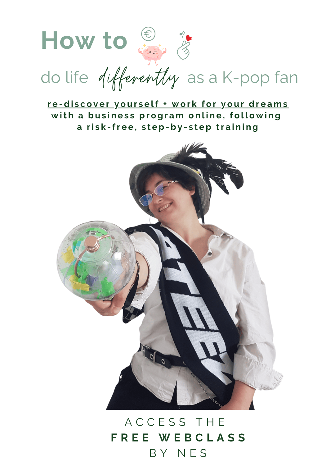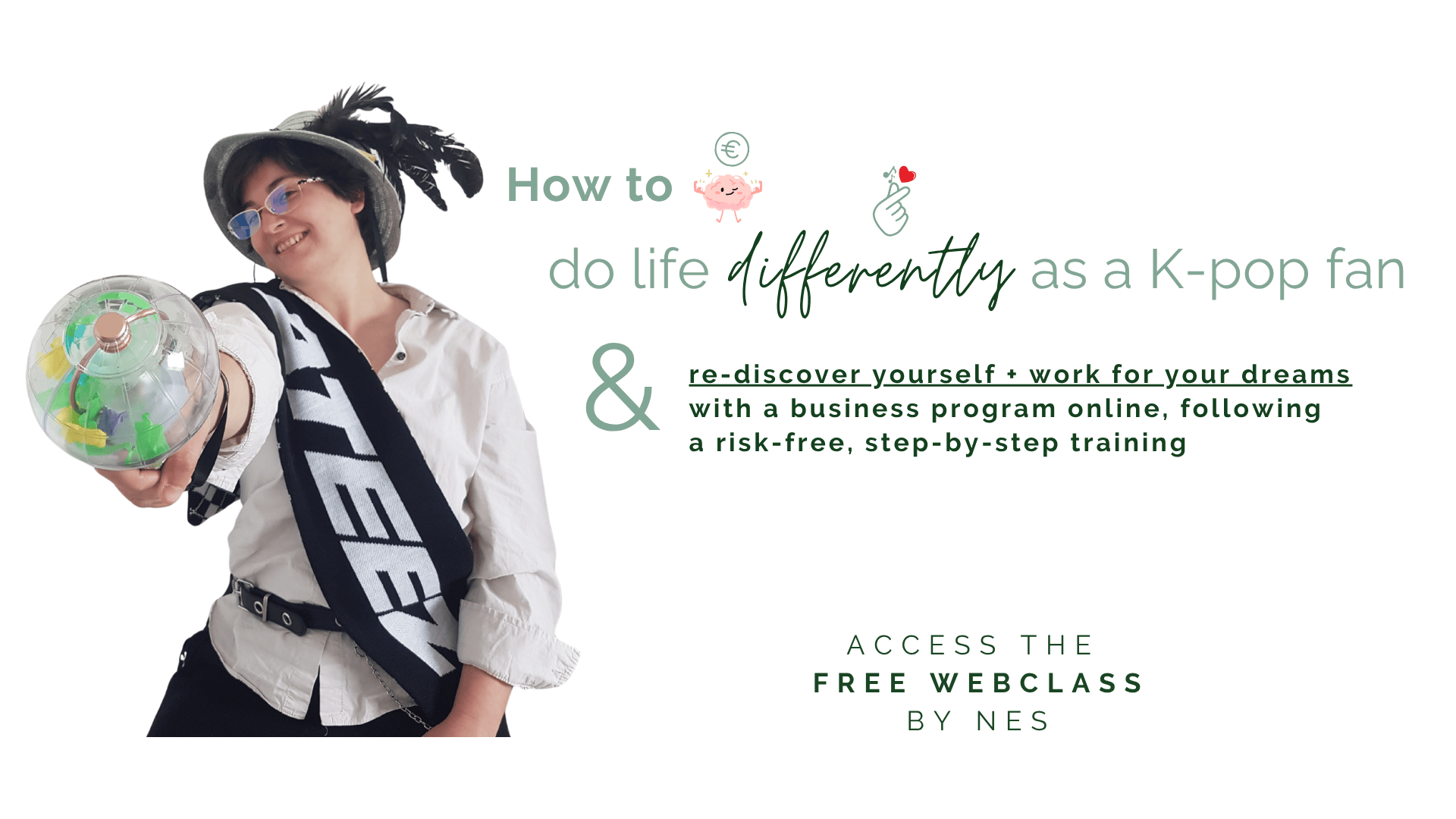 MY MISSION: On a daily basis, I'm showing "outsiders" like myself who feel stuck & frustrated in life that it is safe for them to start making their own decisions and to take control of their life. I am helping you see that the very thing that makes you feel "weird" and like an outsider, is actually exactly what makes you so awesome and powerful as a unique individual. By embodying a safe space myself, I am showing you that it is safe to trust & work together with other K-pop stans who think, feel and dream like you. Because the right people for you are here, you just haven't met them yet.